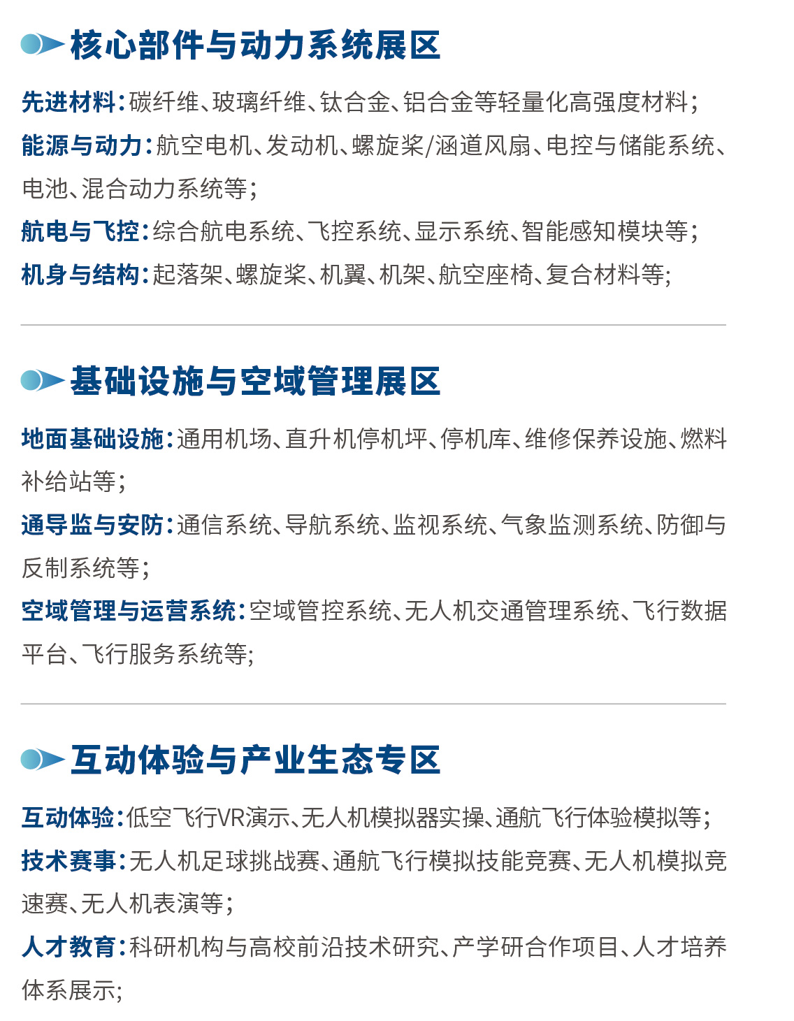 展会以五大专业展区,覆盖低空经济与通用航空全产业链,精准匹配行业需求: